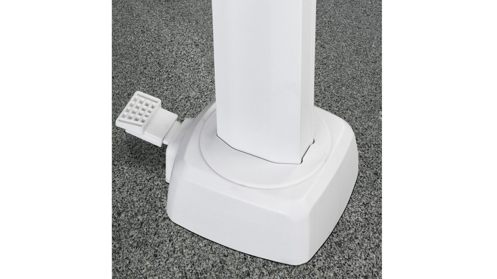 Parasol dostarczany jest bez podstawy. Do tego modelu zaleca się używać podstawy o minimalnej wadze 120 kg lub podstawy gruntowej XL, wpuszczanej do ziemi.