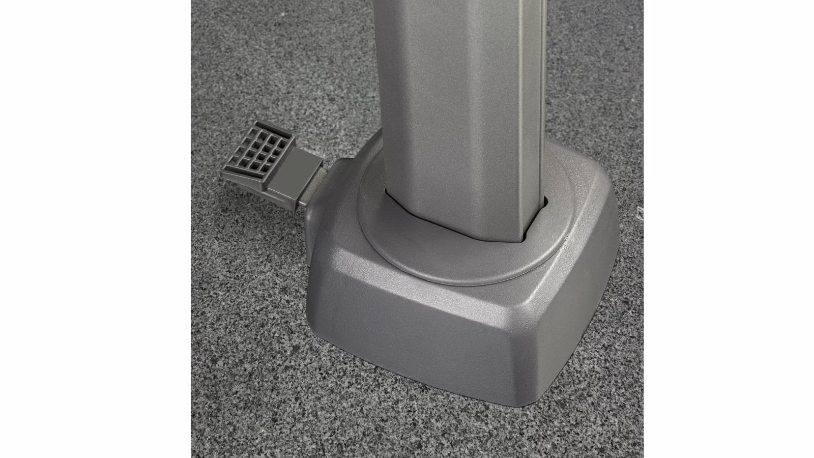 Parasol dostarczany jest bez podstawy. Do tego modelu zaleca się używać podstawy o minimalnej wadze 120 kg lub podstawy gruntowej XL, wpuszczanej do ziemi.