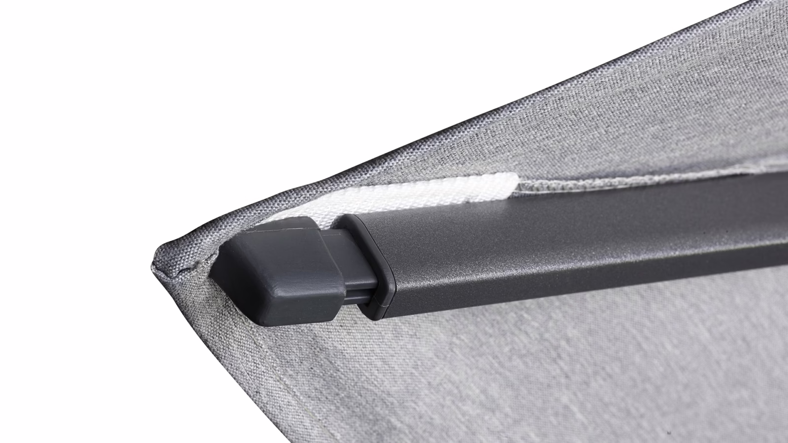 - Zapewnia duże zacienienie wybranej powierzchni, dzięki możliwości pochylenia dwupłaszczyznowego oraz podstawie obracającej się o 360°