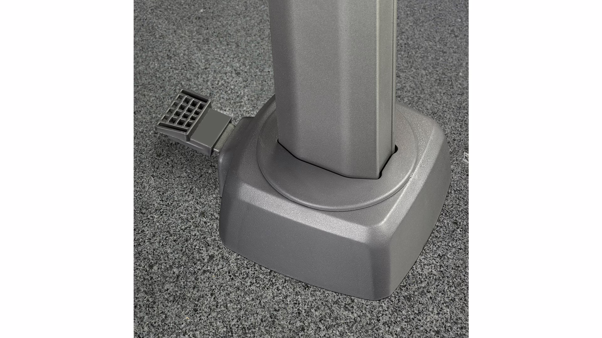 Parasol dostarczany jest bez podstawy. Do tego modelu zaleca się używać podstawy o minimalnej wadze 90 kg lub podstawy gruntowej XL, wpuszczanej do ziemi.