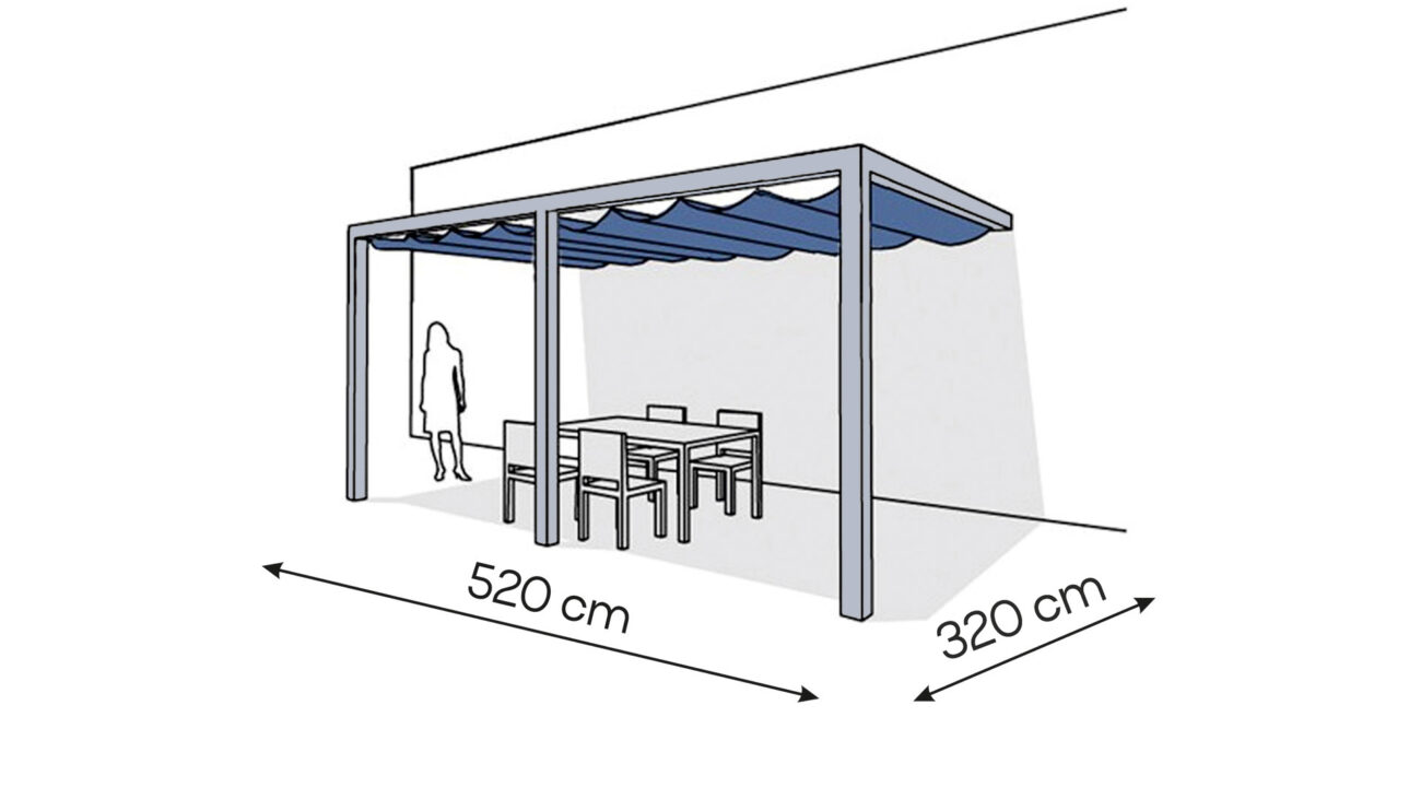 • wymiary zewnętrzne pergoli: 230 x 520 cm,