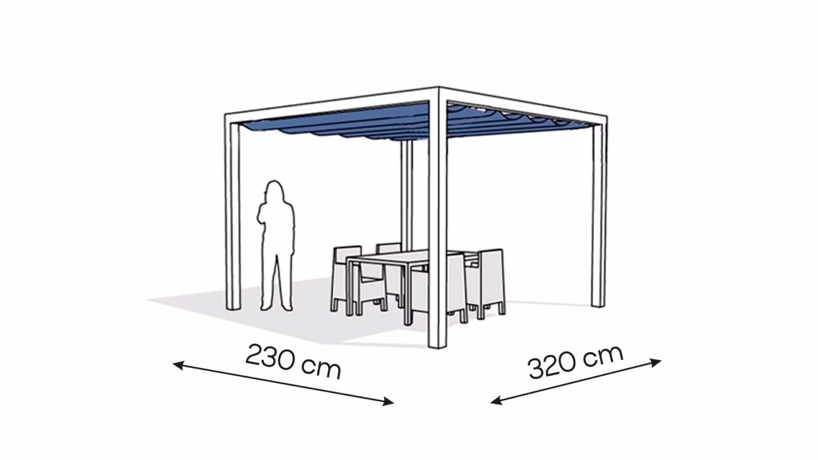 • wymiary zewnętrzne pergoli: 230 x 320 cm,