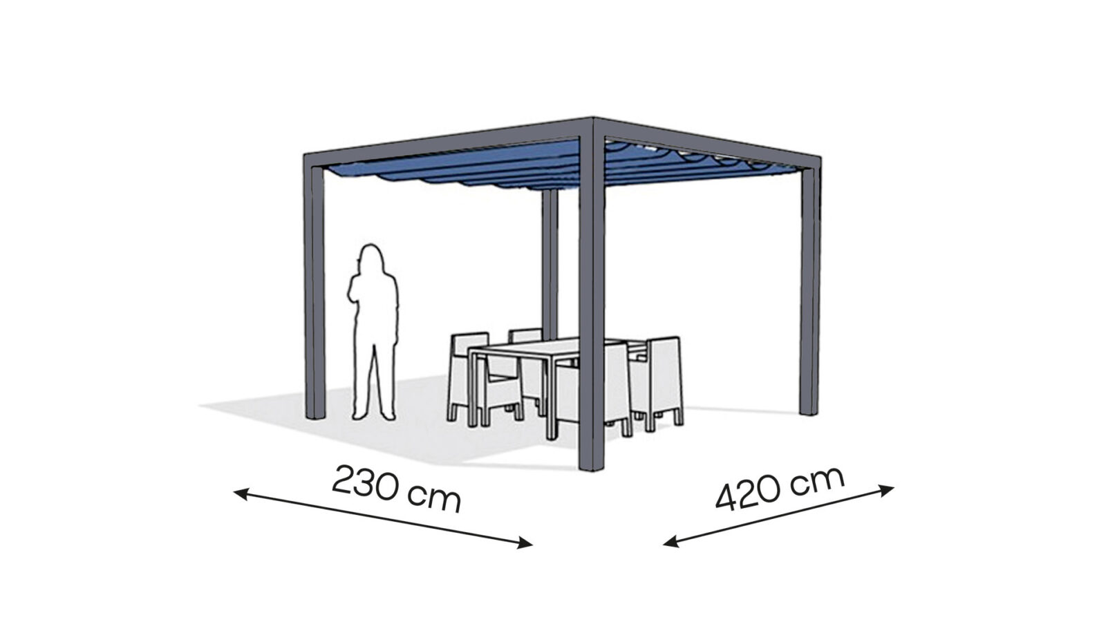 • wymiary zewnętrzne pergoli: 230 x 420 cm