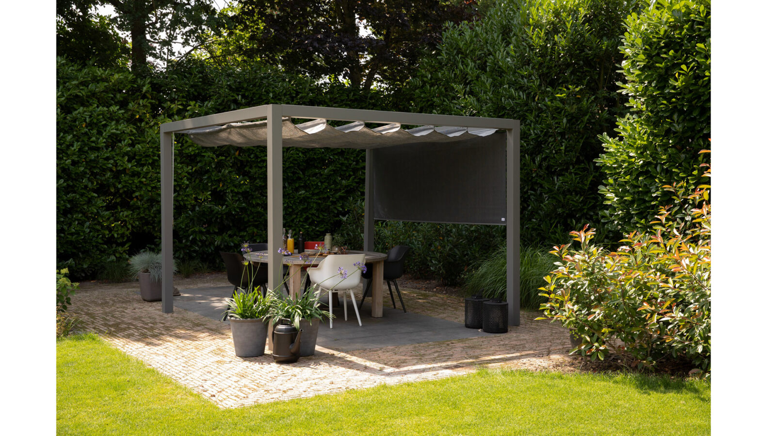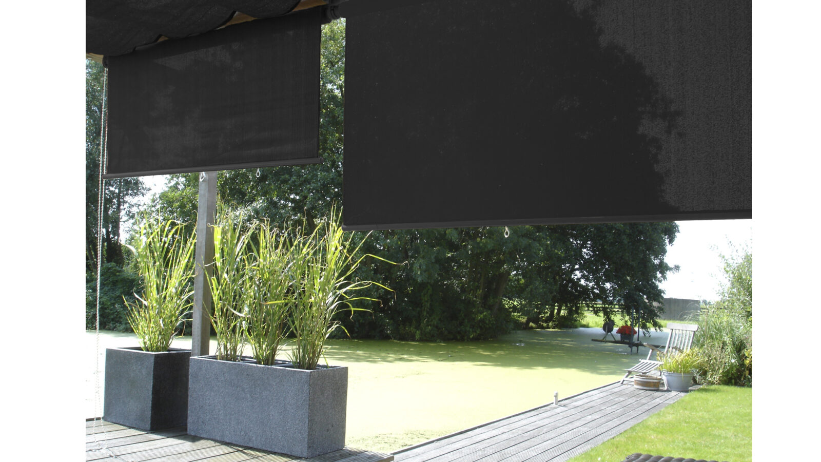 Roleta pionowa umożliwia dowolne sterowanie cieniem, w zależności od kąta padania promieni słonecznych. Roleta może posłużyć jako uzupełnienie pergoli, lub jako integralna część ramy regulowanej Flex Frame®, wraz z którą tworzy markizę balkonową.