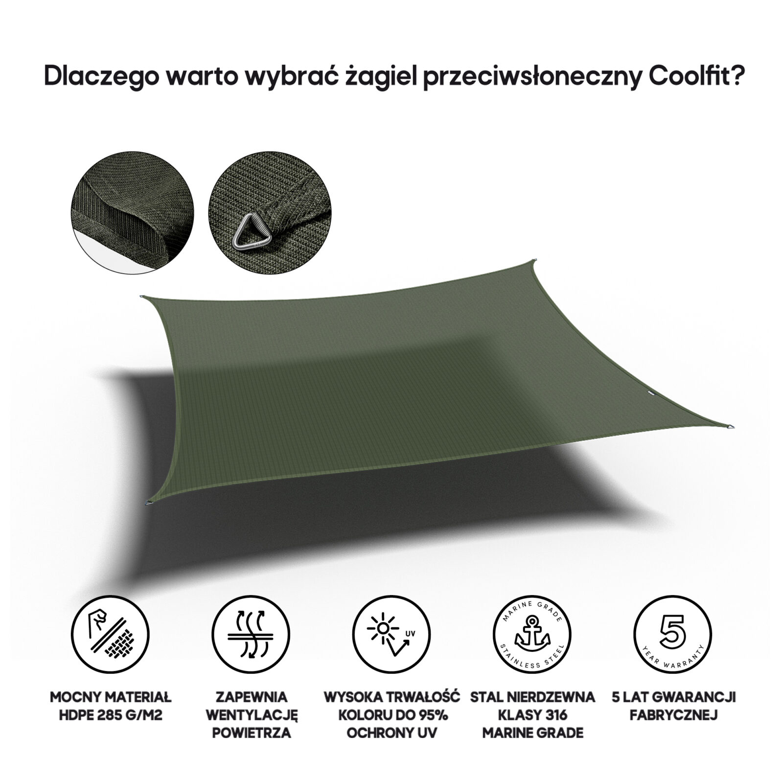 Żagiel – kwadrat 3,6 x 3,6 m kolor Oliwkowy