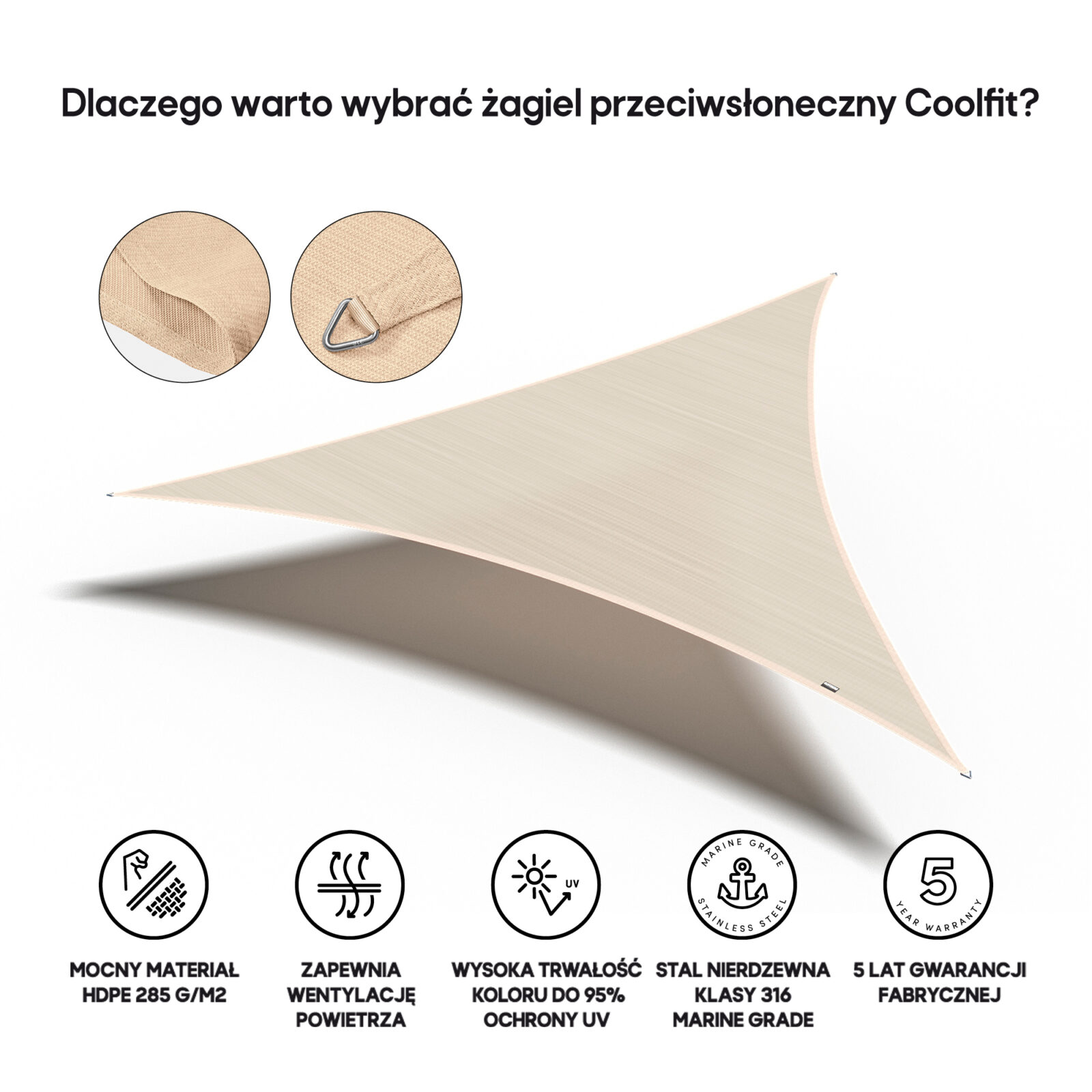 Materiał żagli przeciwsłonecznych Coolfit® to polietylen o dużej gęstości (HDPE) o gramaturze 285 g/m².
