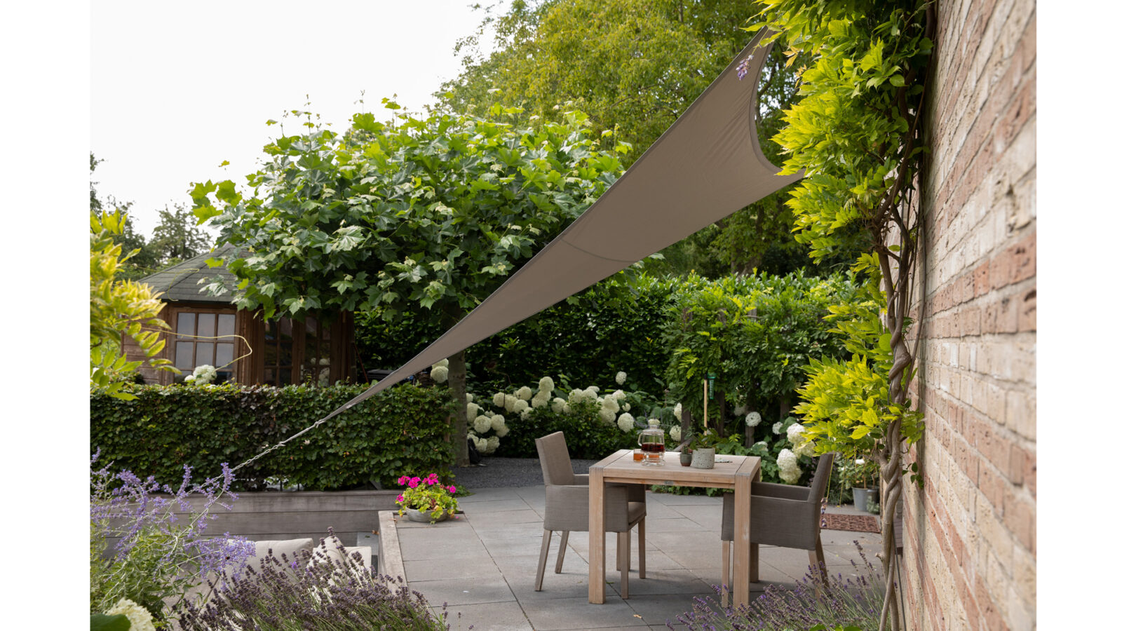 Praktyczny i wytrzymały żagiel umożliwiający spędzanie czasu na tarasie lub w ogrodzie nawet podczas deszczowej pogody.